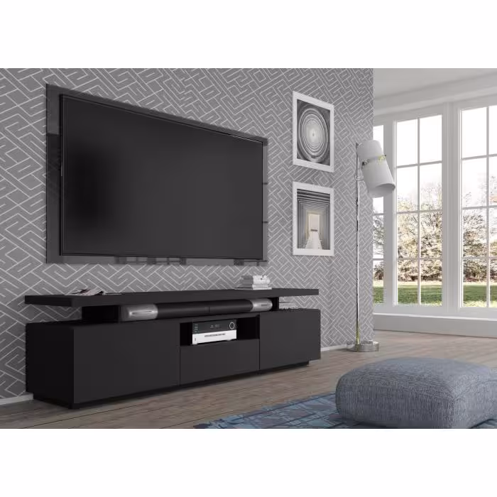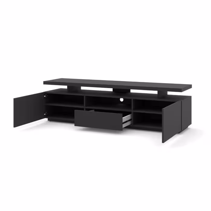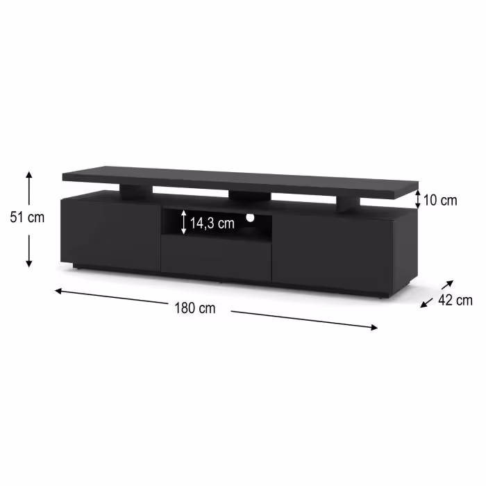 Szafka rtv posiada dwie przestronne szafki, szufladę oraz wnękę. W płycie tylnej otwór na kable. Mebel, który z pewności pomieści sprzęt RTV, konsole, sprzęt grający lub piloty, ale także inne nasze drobiazgi, akcesoria, czy książki.