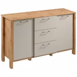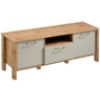 Szafka RTV Indygo 1S to nowoczesny mebel, który harmonijnie łączy funkcjonalność z eleganckim designem. Wykonana z wysokiej jakości płyty wiórowej laminowanej, prezentuje się w przyjemnej dla oka kolorystyce, gdzie fronty w odcieniu beige doskonale kontrastują z dąb wotan korpusu.