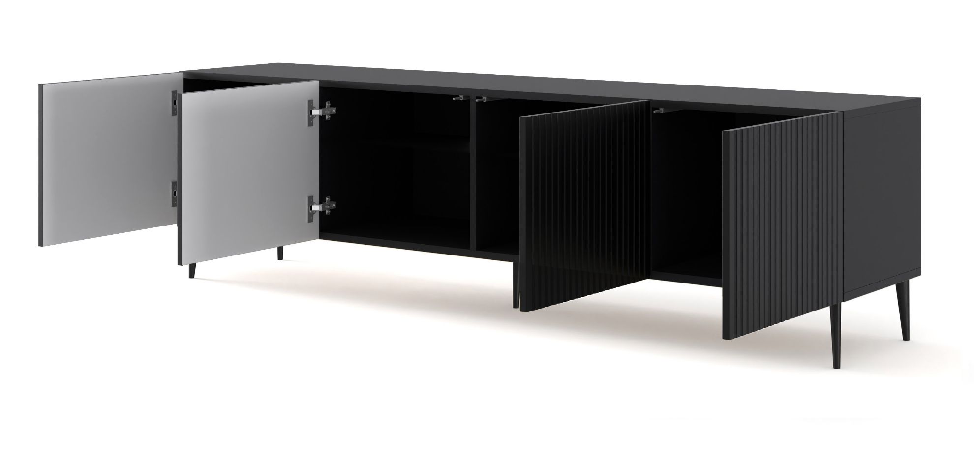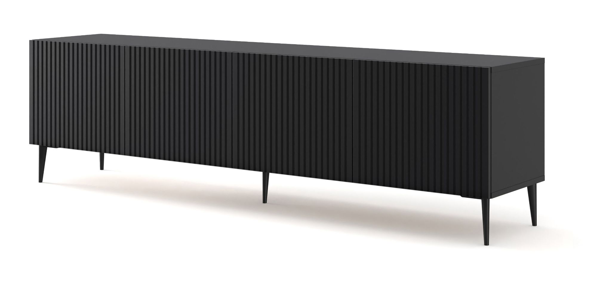 Cztery drzwi szafki RTV Jack 200 zapewniają wygodny dostęp do wnętrza, umożliwiając sprytne schowanie sprzętu elektronicznego czy innych drobiazgów. Solidna konstrukcja i wysokiej jakości materiały użyte do produkcji gwarantują trwałość i stabilność mebla, co sprawia, że będzie on służył przez wiele lat.
