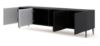 Korpus szafki wykonany jest z trwałej płyty laminowanej w eleganckim czarnym matowym kolorze, co nadaje meblowi lekkości i uniwersalności, doskonale komponując się z różnymi aranżacjami wnętrz. Fronty z płyty MDF frezowanej folią w czarnym matowym wykończeniu dodają szafce wyjątkowego charakteru i nowoczesnego stylu.