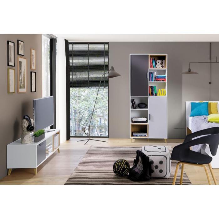 Szafka RTV Joker 10 Biały/Grafit/Szary/Dąb Lefkas łączy nowoczesny design z funkcjonalnością. Pojemna przestrzeń za drzwiami umożliwia utrzymanie porządku w salonie, a matowe wykończenie i stylowe połączenie kolorów nadaje wnętrzu eleganckiego charakteru. Solidna konstrukcja zapewnia stabilność i trwałość mebla.