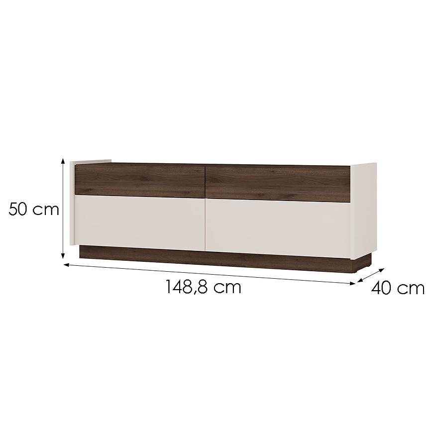 Szafka RTV Kobe 303 4S została zaprojektowana z myślą o maksymalnej funkcjonalności. Wyposażona w cztery pojemne szuflady, oferuje mnóstwo miejsca na przechowywanie pilotów, kabli, płyt DVD, konsol do gier oraz innych akcesoriów, pozwalając zachować porządek w salonie.