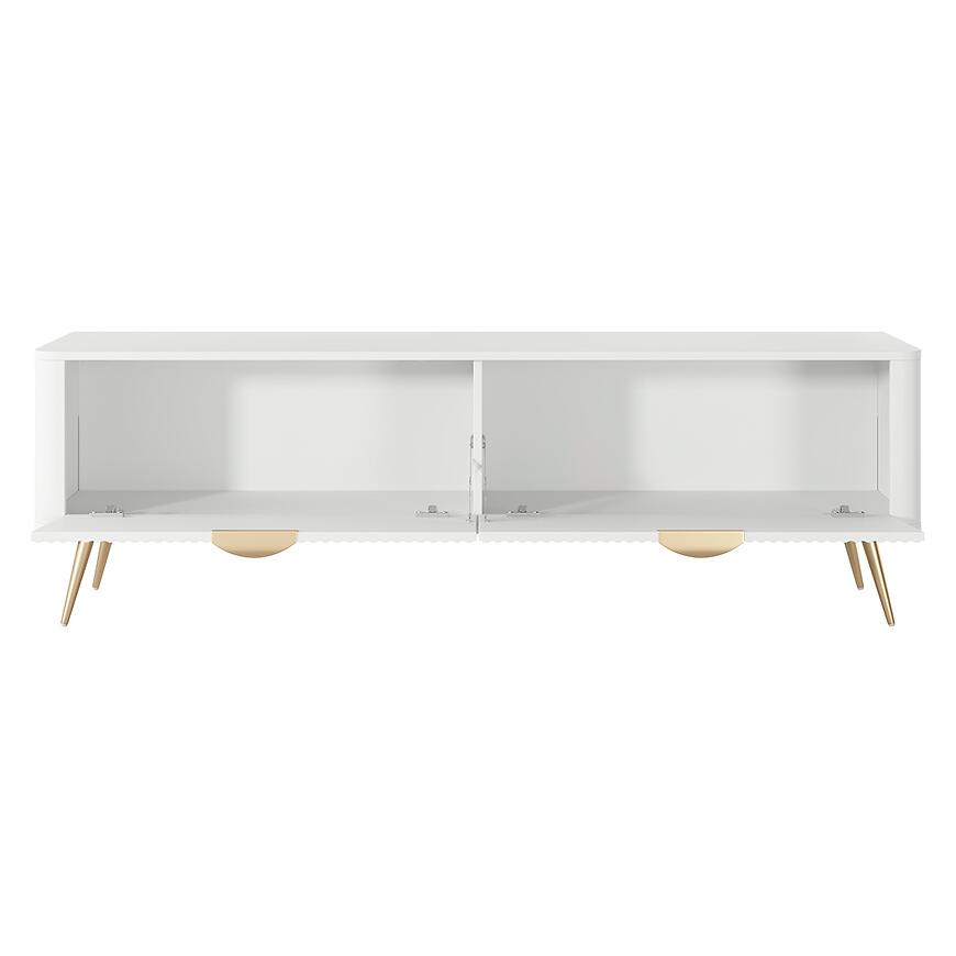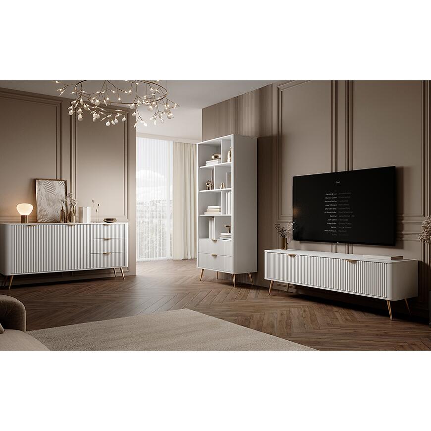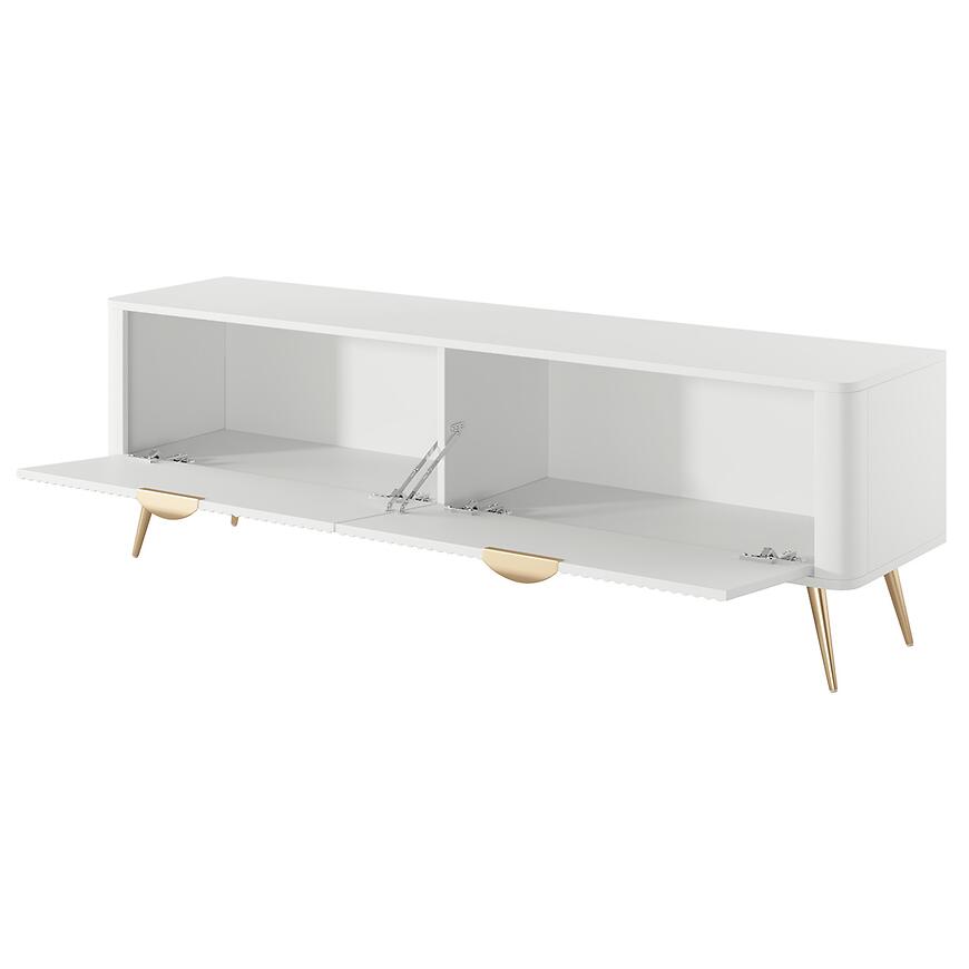 Szafka Lante RTV F 163 2D to elegancki mebel w białym, matowym wykończeniu, który doskonale wpisuje się w nowoczesne aranżacje wnętrz. Dwudrzwiowa konstrukcja pozwala na estetyczne przechowywanie sprzętu RTV oraz akcesoriów, utrzymując porządek w salonie. Minimalistyczny design sprawia, że szafka harmonijnie współgra z meblami w różnych stylach, od skandynawskiego po loftowy.