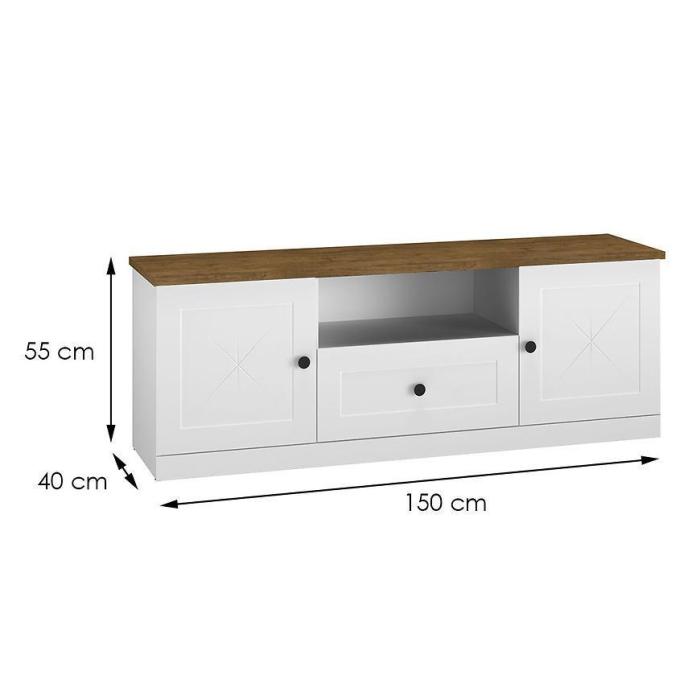 - Szafka RTV Lille 09 2D1S biały mat/dąb lefkas