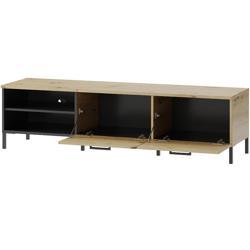Wykończona matowym powierzchniowym wykończeniem, szafka RTV Lucas 25 emanuje subtelnością i elegancją, dodając pomieszczeniu przytulności i stylu. Kombinacja kolorów dąb artisan i czarny mat tworzy interesujący kontrast, który nadaje meblowi charakteru i wyjątkowego uroku.
