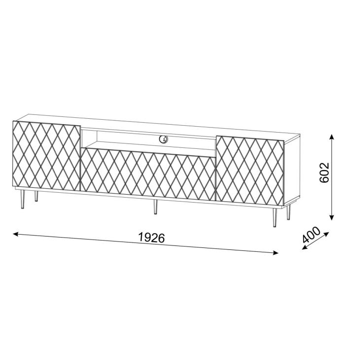 Szafka rtv posiada trzy zamknięte półki oraz jedną otwartą. Całość jest na czarnych eleganckich metalowych nogach w formie szpilki. Mebel, który z pewności pomieści sprzęt RTV, konsole, sprzęt grający lub piloty, ale także inne nasze drobiazgi, akcesoria, czy książki.