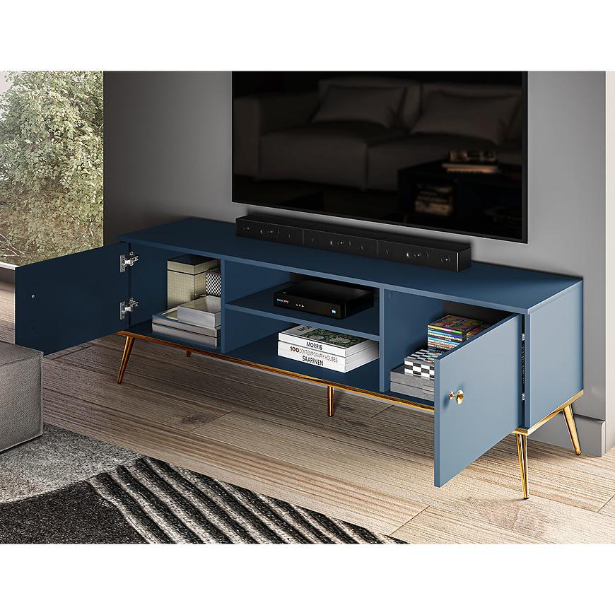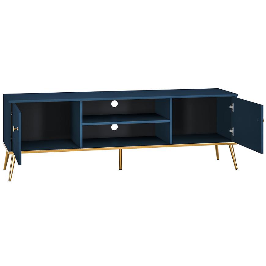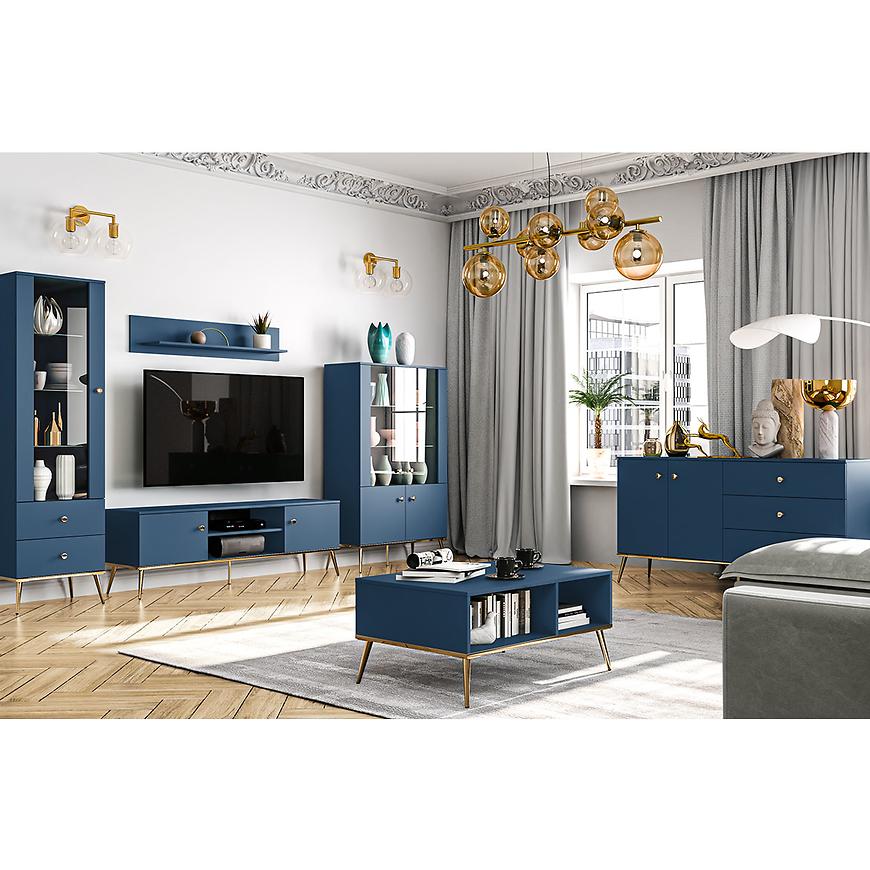 Szafka RTV Marine 05 to elegancki i funkcjonalny element wyposażenia wnętrz, zaprojektowany z myślą o nowoczesnych przestrzeniach. Jej głęboki ciemny błękit oraz matowe wykończenie nadają pomieszczeniu stylowy i harmonijny wygląd.