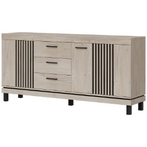 Model wyposażony jest w trzy zamykane szafki oraz otwartą półkę, która idealnie sprawdzi się do przechowywania sprzętu RTV, dekodera lub konsoli. To funkcjonalne rozwiązanie, które pomoże utrzymać porządek w salonie i estetycznie wyeksponować domowe multimedia.