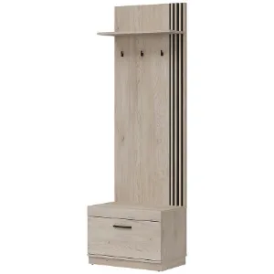 Fronty w kolorze dąb cremona cotta z czarnymi akcentami doskonale komponują się z korpusem w odcieniu dąb cremona cotta, tworząc elegancki, a zarazem ciepły wygląd mebla. Szafka pochodzi z kolekcji MATI, która inspirowana jest nowoczesnym stylem aranżacji wnętrz.