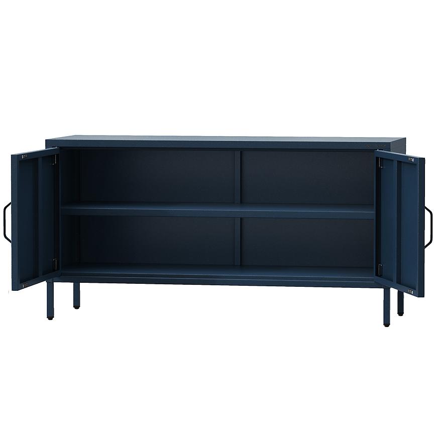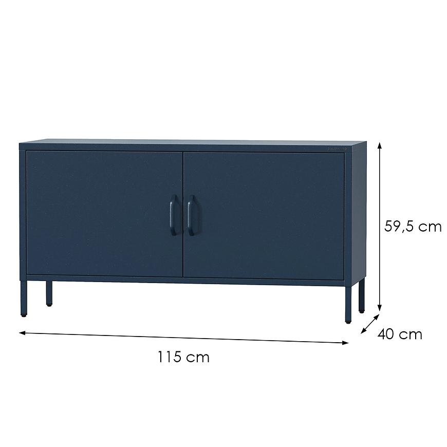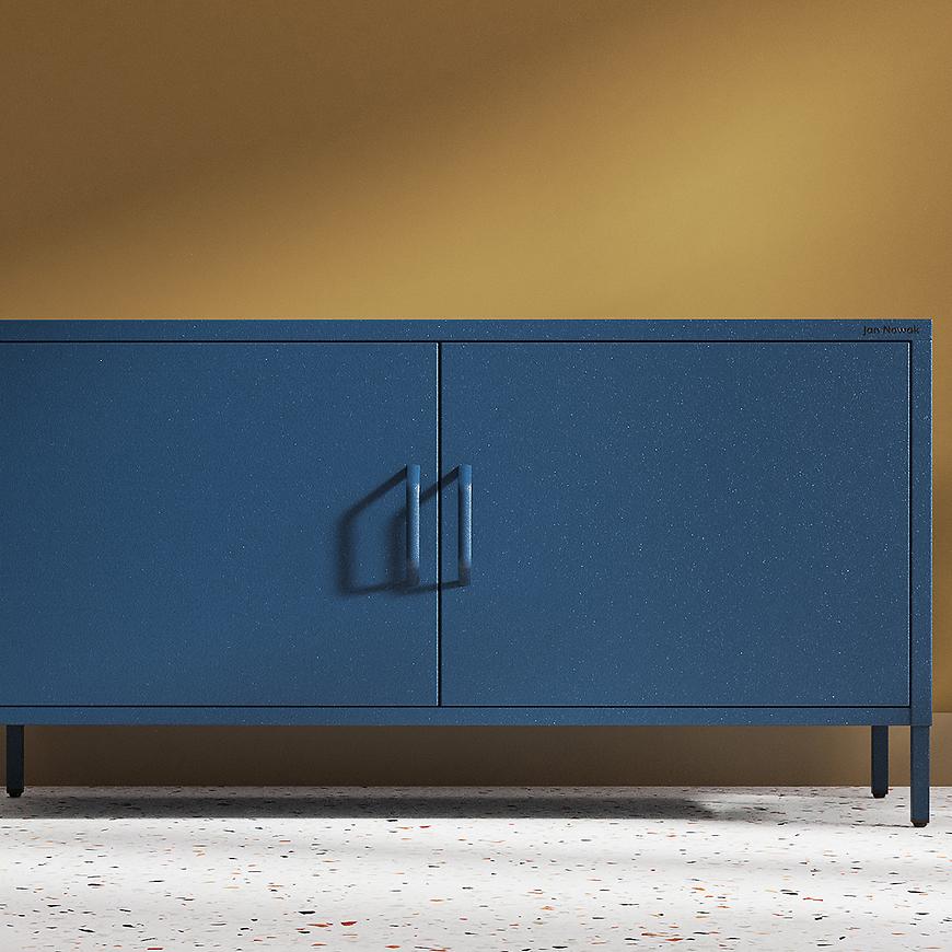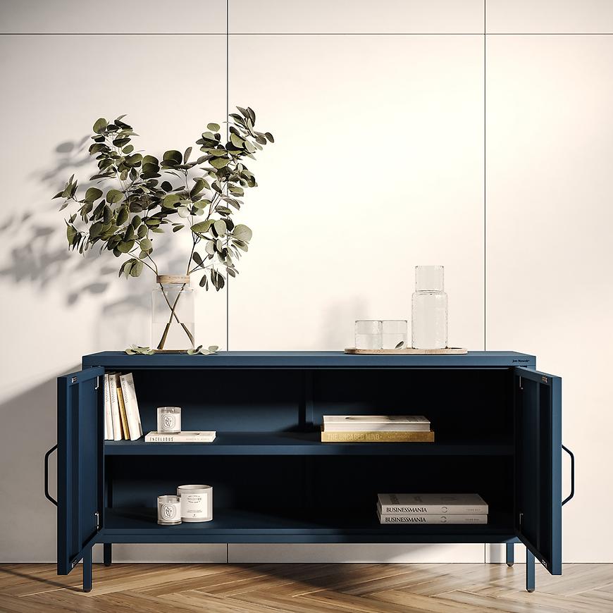 Szafka RTV Metalowa Rosa Modern Dark Blue to stylowy mebel loftowy o industrialnym charakterze, który świetnie odnajdzie się w nowoczesnych wnętrzach. Wykonana z metalu w eleganckim, matowym wykończeniu w kolorze granatowym, łączy surową formę z funkcjonalnością. Mebel o wymiarach 59,5 × 15 × 40 cm posiada dwudrzwiową konstrukcję, idealną do przechowywania sprzętu RTV i akcesoriów. Należy do kolekcji ROSA MODERN i wymaga samodzielnego montażu. Idealna propozycja dla miłośników prostoty i wyrazistego designu.