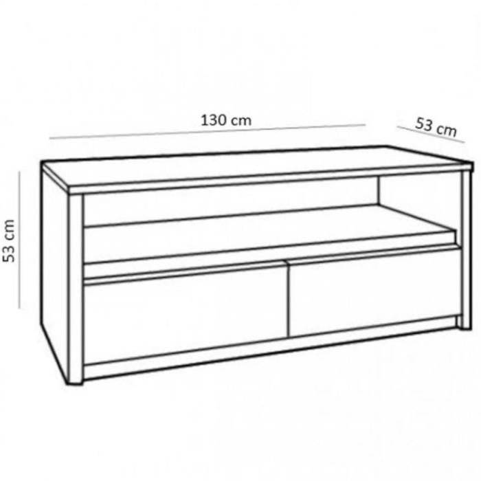 Szafka rtv w kolorze dąb lefkas ma szuflady i półki. Mebel z pewności pomieści sprzęt RTV, konsole, sprzęt grający lub piloty, ale także inne nasze drobiazgi, akcesoria, czy książki.