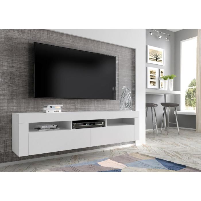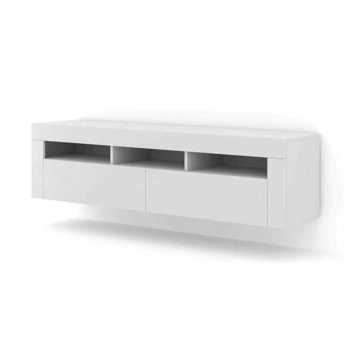Szafka rtv jest uniwersalna , gdyż może być stojąca wysokość 43 cm lub wisząca przymocowana do ściany wysokość 41 cm, możliwość wyboru przy montażu. Posiada trzy otwarte półki. Mebel, który z pewności pomieści sprzęt RTV, konsole, sprzęt grający lub piloty, ale także inne nasze drobiazgi, akcesoria, czy książki.
