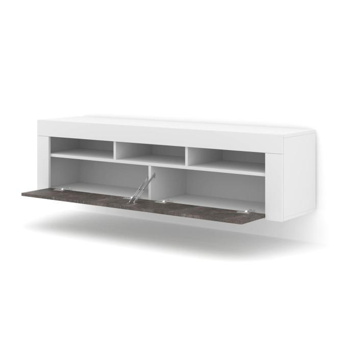 Szafka rtv jest uniwersalna , gdyż może być stojąca wysokość 43 cm lub wisząca przymocowana do ściany wysokość 41 cm, możliwość wyboru przy montażu. Posiada trzy otwarte półki. Mebel, który z pewności pomieści sprzęt RTV, konsole, sprzęt grający lub piloty, ale także inne nasze drobiazgi, akcesoria, czy książki.
