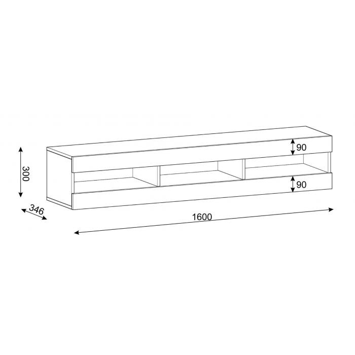 Szafka rtv jest uniwersalna , gdyż może być stojąca wysokość 32 cm lub wisząca przymocowana do ściany wysokość 30 cm, możliwość wyboru przy montażu. Posiada trzy otwarte półki. Mebel, który z pewności pomieści sprzęt RTV, konsole, sprzęt grający lub piloty, ale także inne nasze drobiazgi, akcesoria, czy książki.