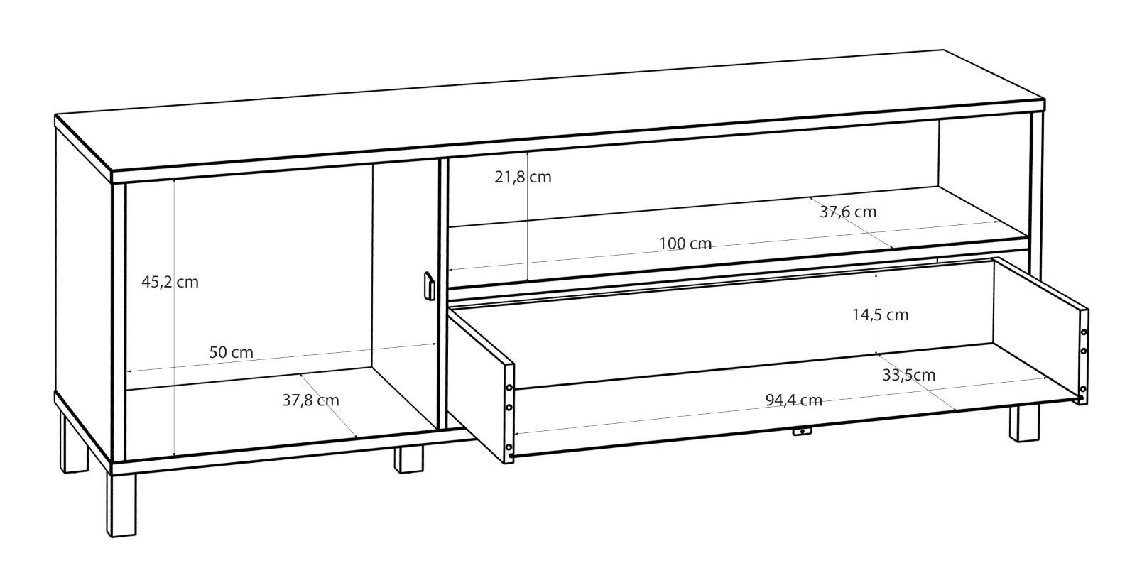 Mebel oparty jest na nogach z płyty MDF o wysokości 10 cm, które gwarantują niezbędną stabilność, a jednocześnie nadają szafce lekkości. Dodatkowym atutem nóżek są wbudowane ślizgacze, które skutecznie chronią podłogę przed uszkodzeniami. Uchwyty typu gałka wykonane z drewna stanowią subtelną ozdobę, współgrającą z całością konstrukcji. Szafka RTV Nortado to doskonały wybór do salonu, zapewniający funkcjonalność, wygodę oraz elegancki wygląd, który z pewnością wkomponuje się w różnorodne aranżacje wnętrz.
