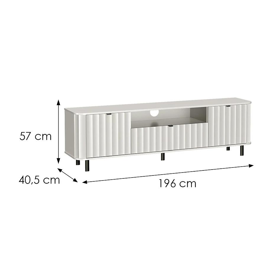 Szafka RTV Novado 5NV 200 Biały Klasyczny to nowoczesny mebel o wymiarach 57x196x40,5 cm, wykonany z płyty MDF i laminowanej płyty wiórowej w eleganckim białym kolorze (biel alpejska) z matowym wykończeniem. Posiada dwudrzwiową konstrukcję oraz jedną szufladę, idealną do przechowywania sprzętu RTV i akcesoriów. Produkt wymaga samodzielnego montażu, świetnie sprawdzi się w nowoczesnych, jasnych wnętrzach.