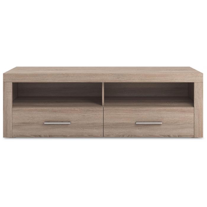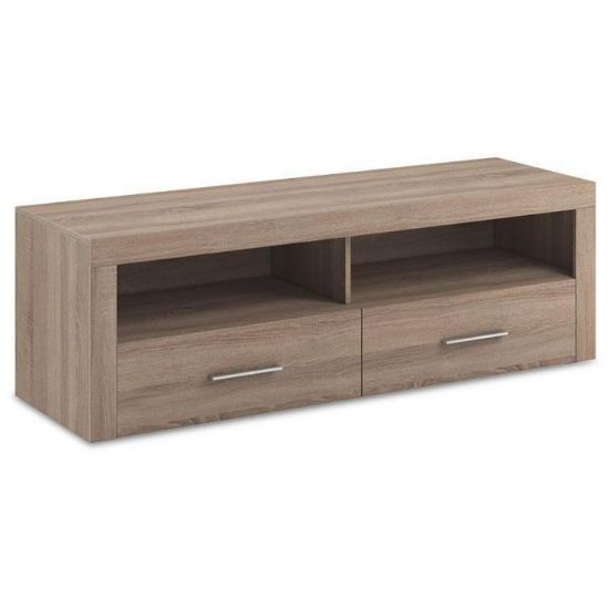 Szafka RTV to mebel niezbędny w każdym współczesnym domu. Co więcej, wymaga się od niej, by zmieściła nie tylko telewizor, ale również inne sprzęty elektroniczne i podręczne drobiazgi. Wszystkie te cechy posiada szafka RTV One 5 dąb sonoma wykonana z płyty laminowanej 16 mm – oprócz stabilnego blatu o dużej powierzchni (155x50 cm) została wyposażona w dwie półki (np. na dekoder) oraz dwie pojemne szuflady. Szafka RTV One 5 dąb sonoma, dzięki swojej uniwersalnej, ponadczasowej bryle, pasuje do wnętrz urządzonych zarówno w stylach klasycznych, jak i bardziej nowoczesnych. Piękny, ciepły odcień drewna i naturalny wzór naturalnych drewnianych sęków sprawia, że jest doskonałą podstawą dalszych aranżacji.