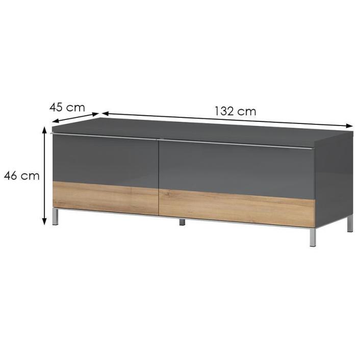 Kolekcja Onyx w kolorze anthracite/pacific walnut świetnie prezentuje się w nowoczesnych wnętrzach. Szafka rtv doskonale sprawdzi się w każdym salonie lub innym, dowolnym pomieszczeniu. Wykonany jest z płyty wiórowej lakierowanej.