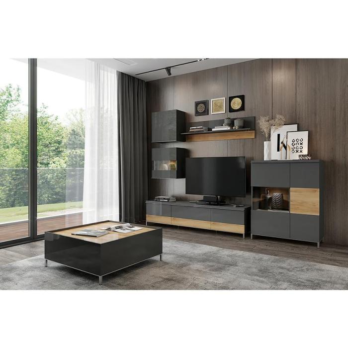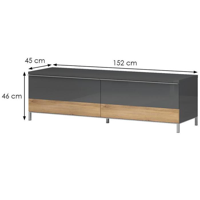 Kolekcja Onyx w kolorze anthracite/pacific walnut świetnie prezentuje się w nowoczesnych wnętrzach. Szafka rtv doskonale sprawdzi się w każdym salonie lub innym, dowolnym pomieszczeniu. Wykonany jest z płyty wiórowej lakierowanej.