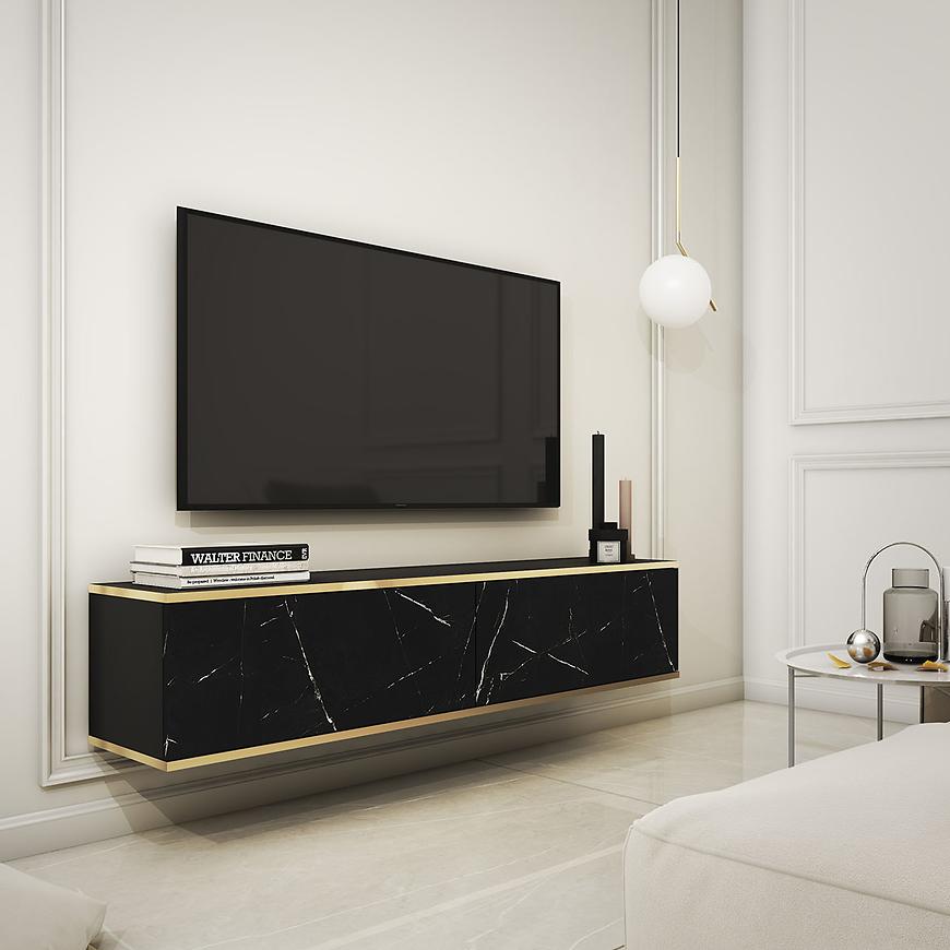 Szafka RTV Oro w kolorze czarny marmur to eleganckie i funkcjonalne rozwiązanie, które z pewnością wzbogaci aranżację każdego nowoczesnego wnętrza. Jej fronty o matowym wykończeniu nadają meblowi subtelną estetykę, podkreślając jednocześnie nowoczesny styl.