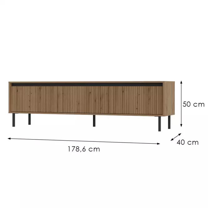 Szafka Osaka 303 2S oferuje wystarczająco dużo przestrzeni do przechowywania sprzętu RTV, płaskich telewizorów, konsol do gier oraz innych urządzeń multimedialnych. Została wyposażona w pojemne szuflady, które umożliwiają przechowywanie kabli, pilotów oraz innych akcesoriów w sposób zorganizowany i estetyczny. Dzięki temu, nie tylko pełni rolę mebla do przechowywania, ale także pomaga utrzymać porządek w strefie multimedialnej.