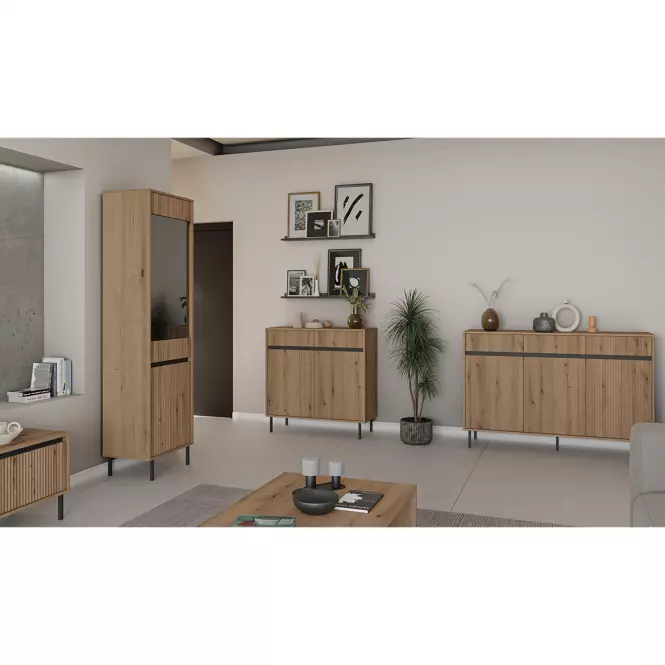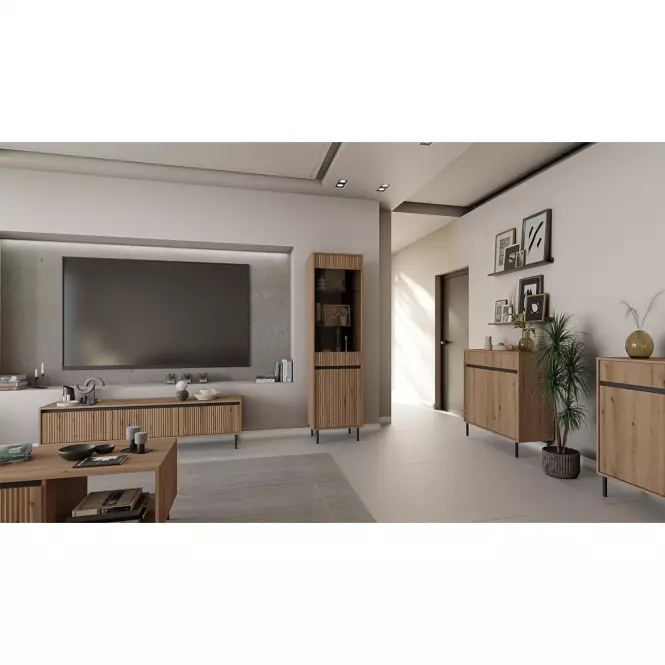 Z kolekcji Osaka, szafka RTV wyróżnia się prostym, ale bardzo eleganckim wyglądem, który dodaje przestrzeni nowoczesnego charakteru. Dzięki swojej funkcjonalności i solidnej konstrukcji, jest idealnym rozwiązaniem do salonów, które stawiają na nowoczesne, minimalistyczne rozwiązania. Szafka Osaka 303 2S będzie doskonałym miejscem do przechowywania sprzętu RTV, ale także stanowić elegancki akcent w przestronnych pomieszczeniach.