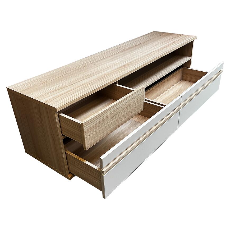 Uniwersalny mebel do salonu lub pokoju multimedialnego, łączący estetykę z funkcjonalnością.