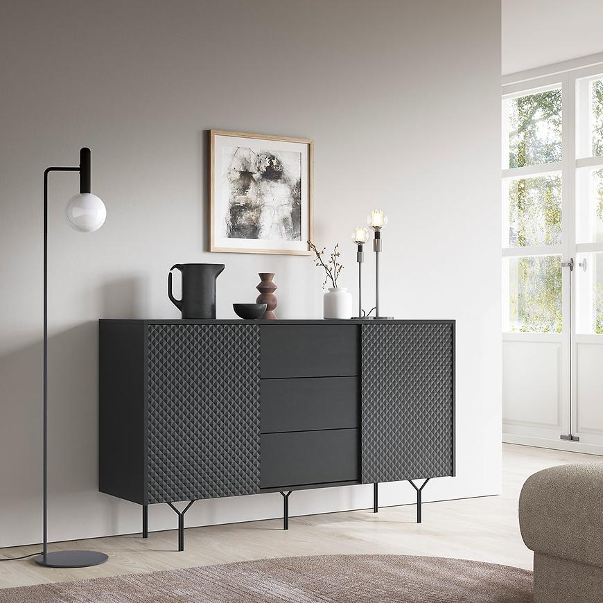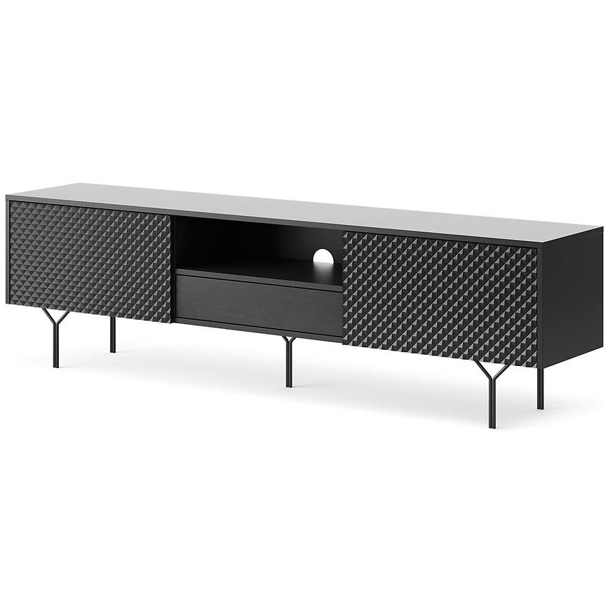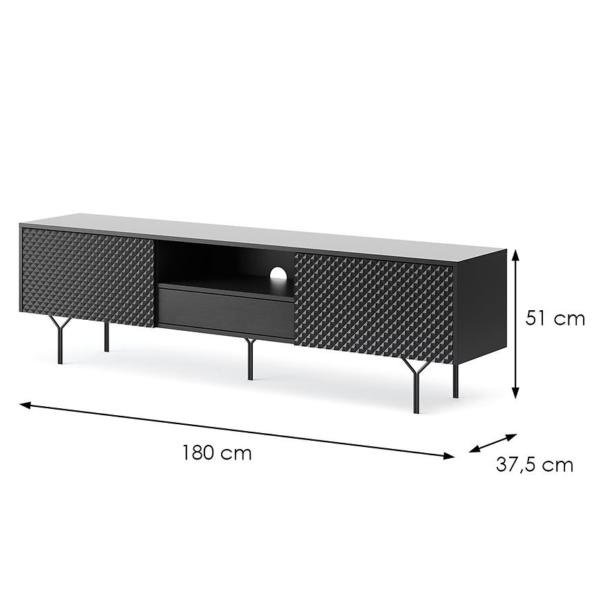 Szafka RTV Raven w kolorze czarnym to eleganckie i funkcjonalne rozwiązanie, które z pewnością wzbogaci aranżację każdego nowoczesnego wnętrza. Jej fronty o matowym wykończeniu nadają meblowi subtelną estetykę, podkreślając jednocześnie nowoczesny styl.