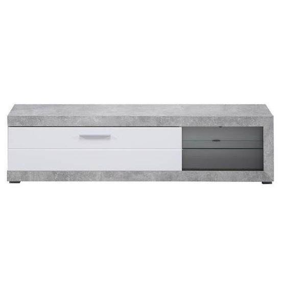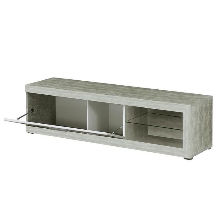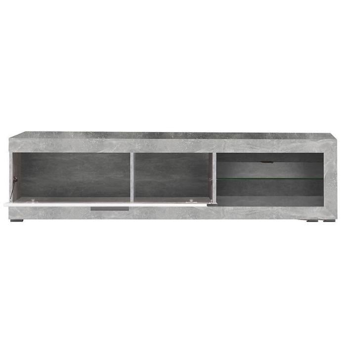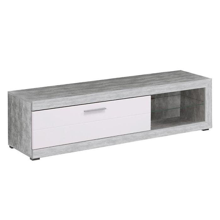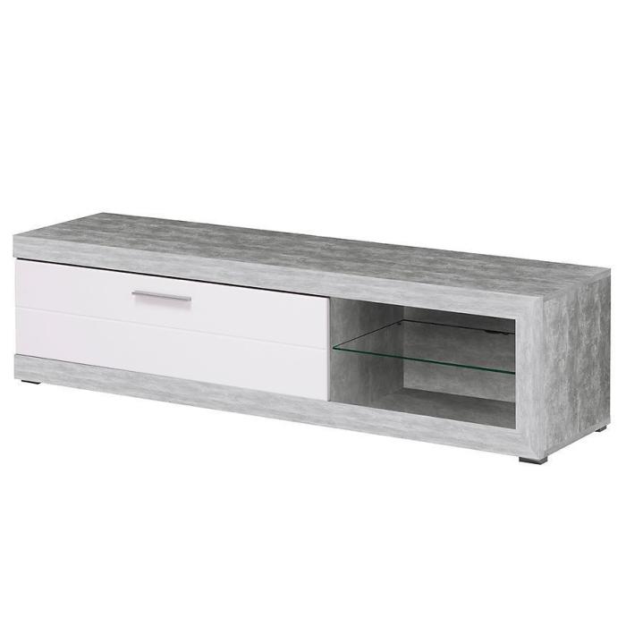 Szafka RTV posiada jedną szafkę z uchylnymi drzwiami i otwartą półkę. Komoda może być świetnym uzupełnieniem aranżacji w salonie i w pokoju młodzieżowym.