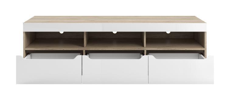 Nowoczesna kolekcja Sanremo to porpozycja dla miłosników minimalizmu, którzy cenią sobie również funkcjonalność. Korpus w kolorze jasnego drewna oraz połyskujący biały front wykonano z płyty MDF zawierającej włókna drzewne. Kompozycja tych dwóch barw - bieli i jasnego drewna - wprowadzi do pomieszczenia powiew natury. Możliwość zamontowania dodatkowego oświetlenia LED jest odpowiednim rozwiązaniem dla osób, które chcą wyeksponować znajdujące się na półkach przedmioty. Kolekcja Sanremo szczególnie dobrze zaprezentuje się w jasnych pomieszczeniach urządzonych w stylu skandynawskim.