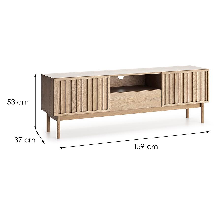 Safka RTV pod telewizor z kolekcji Saori. Dostępna w dekorze cremona w matowym wykończeniu, wykonana z płyty wiórowej laminowanej. Szafka dwudrzwiowa z jedna szufladą, drzwi uchylne.