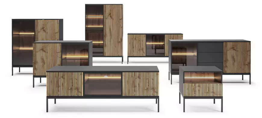 Kolekcja Sento reprezentuje styl nowoczesny i funkcjonalność w jednym. Dzięki solidnej konstrukcji i starannemu wykonaniu, szafka RTV Sento nie tylko spełni oczekiwania pod względem praktyczności, ale także nada wnętrzu niepowtarzalnego charakteru i elegancji.