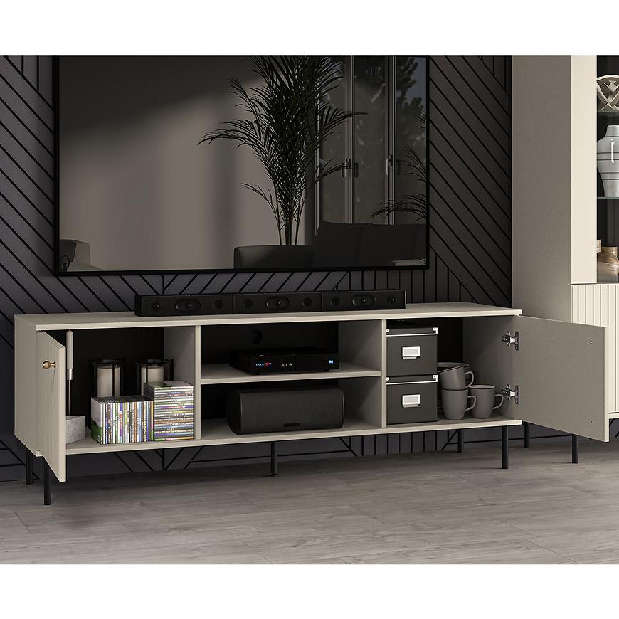 Szafka RTV Sophie 06 Cashmere to kwintesencja nowoczesnej elegancji, która idealnie wkomponuje się w wystrój każdego nowoczesnego salonu. Jej stonowana kolorystyka i minimalistyczne wykończenie sprawiają, że jest nie tylko praktycznym meblem, ale także stylowym elementem dekoracyjnym.
