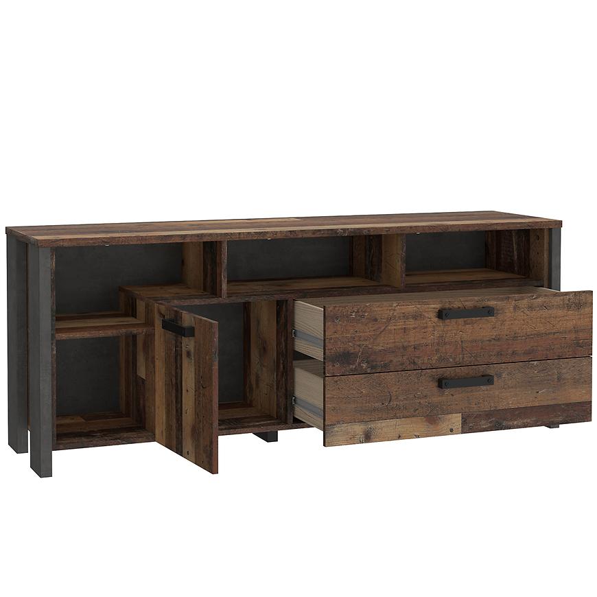 Szafka RTV Symmach to niezwykle stylowy i funkcjonalny mebel, który doskonale wpisuje się w nowoczesny loftowy klimat każdego wnętrza. Jego charakterystyczny design oraz wyjątkowe połączenie kolorów nadają pomieszczeniu industrialnego uroku, sprawiając, że staje się ono miejscem pełnym charakteru.