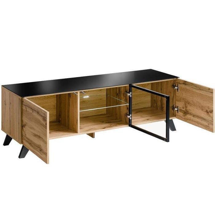 Dekor dębu wotan tworzy ciepłe i przytulne otoczenie, podkreślając naturalny charakter drewna. Elementy w kolorze czarnym stanowią kontrastujący akcent, dodając kolekcji wyrazistości. Matowe wykończenie nadaje kolekcji elegancki i subtelny wygląd. Matowe wykończenie nie tylko prezentuje się wspaniale, ale również skutecznie maskuje odciski palców oraz ślady użytkowania, utrzymując meble w nienagannym stanie na dłużej.