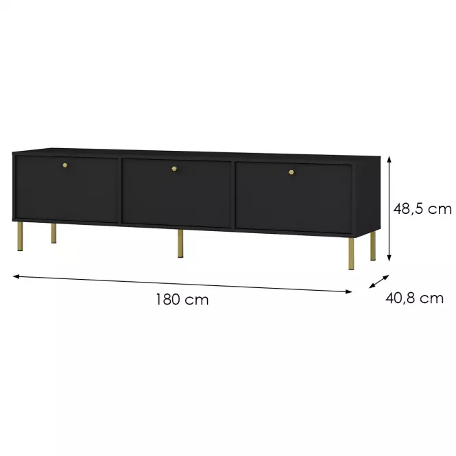 Praktyczność i funkcjonalność: Przestronna szafka RTV pomieści wszystkie urządzenia multimedialne, a jej przemyślany układ pozwala na wygodne organizowanie przestrzeni.