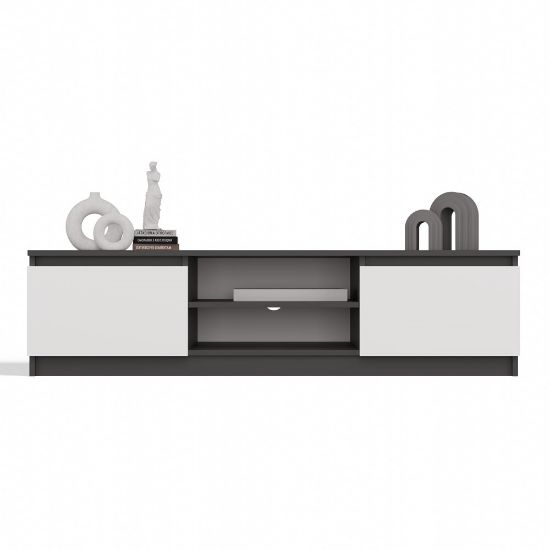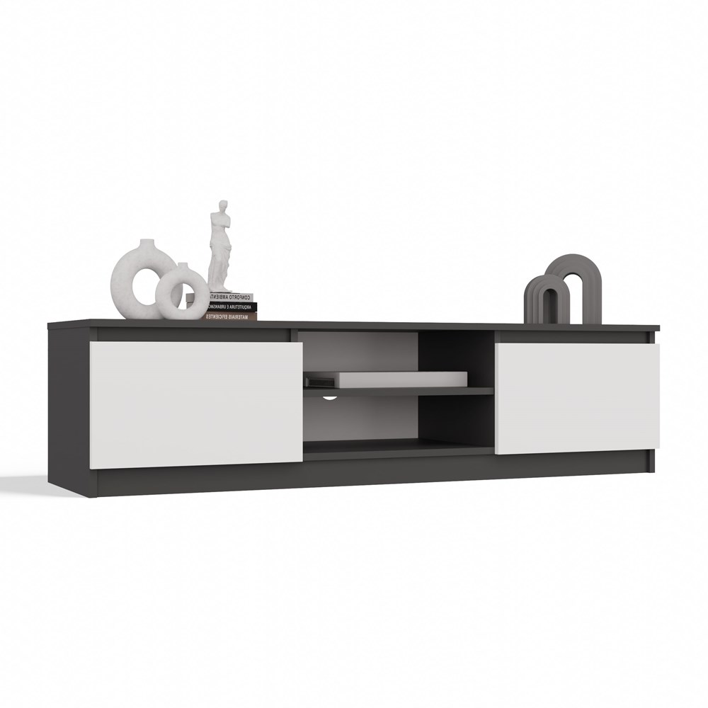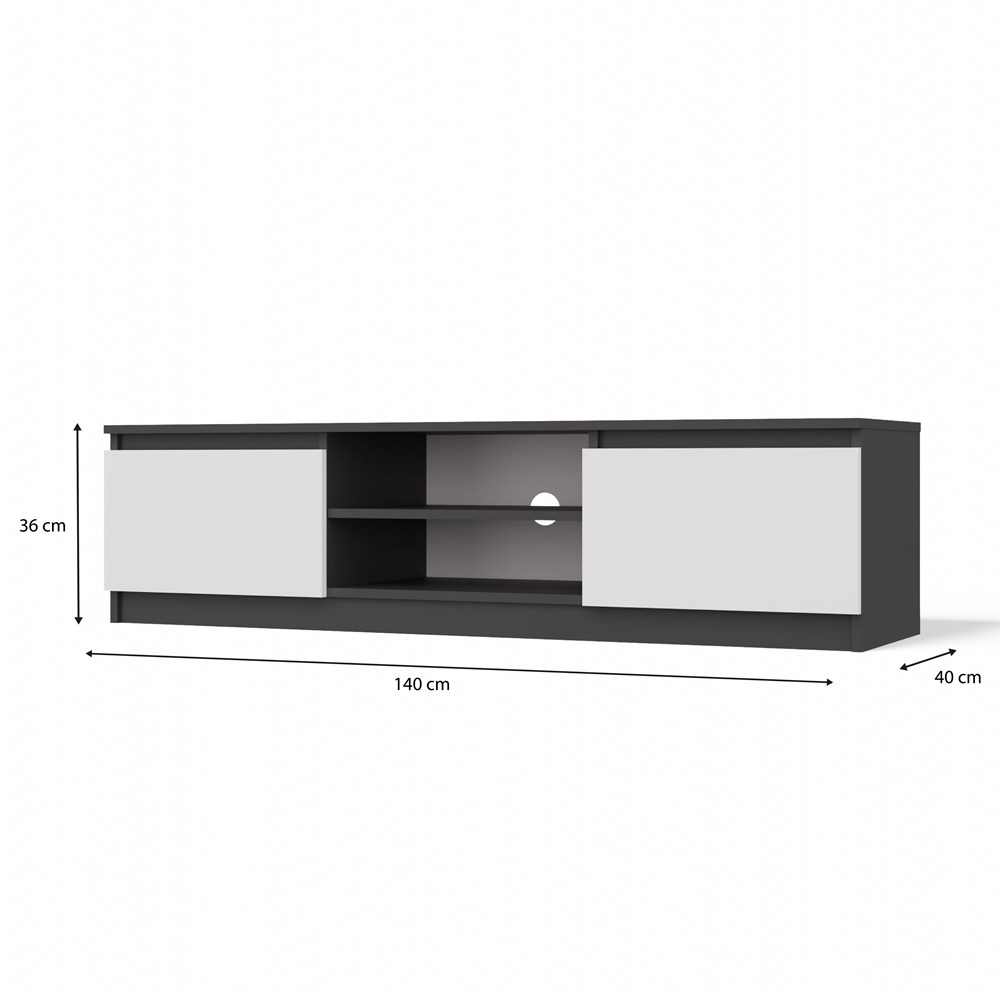 Szafka RTV Tula to idealne rozwiązanie do Twojego salonu. Jej modne połączenie kolorów – antracytu i bieli – nadaje wnętrzu świeżości i stylowego charakteru, doskonale wpisując się w aktualne trendy aranżacyjne.