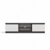 Wykonana z trwałej płyty wiórowej laminowanej o grubości 16 mm, szafka zapewnia solidność i odporność na codzienne użytkowanie. Dwie boczne szafki bez półek oferują mnóstwo miejsca do przechowywania sprzętów, kabli czy innych domowych drobiazgów. Otwarta półka środkowa idealnie nadaje się na dekoder, konsolę czy odtwarzacz, a praktyczny otwór z tyłu ułatwia estetyczne i dyskretne poprowadzenie kabli.