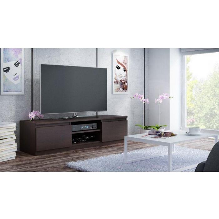 Nowoczesny oraz minimalistyczny wygląd doskonale pasuje do obecnego wzornictwa sprzętu RTV. Prosta konstrukcja gwarantuje łatwość montażu oraz niezawodność w użytkowaniu.Szafka RTV w kolorze wenge.