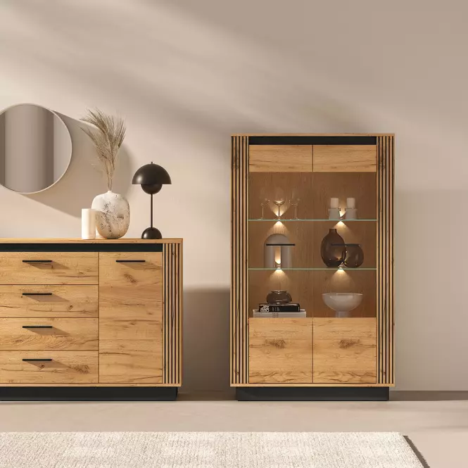 Model ten wyposażony jest w liczne szuflady i kilkudrzwiowe fronty, które pomogą utrzymać porządek wokół sprzętu multimedialnego. Przestrzeń szuflad idealnie sprawdzi się do przechowywania akcesoriów RTV, pilotów czy kabli, a zamknięte szafki z powodzeniem pomieszczą większe przedmioty, które warto mieć pod ręką. Dzięki temu organizacja strefy rozrywki staje się prosta i funkcjonalna. Szafka RTV Urso to element kolekcji Urso, która wyróżnia się nowoczesnym stylem i przemyślaną konstrukcją – każdy detal jest tu zaprojektowany z myślą o codziennym komforcie użytkowania.