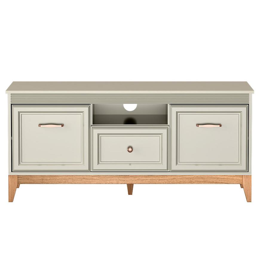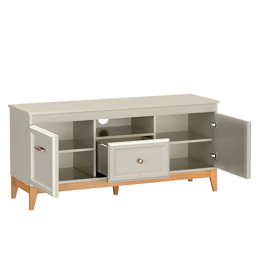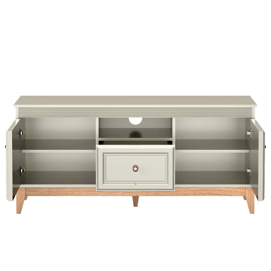 Szafka RTV Windsor 8W Kashmir/Dąb Naturalny to stylowy mebel w skandynawskim designie o wymiarach 62x135,5x40,5 cm. Wykonana z płyty MDF i laminowanej płyty wiórowej w kolorze cashmere z matowym wykończeniem. Wyposażona w dwudrzwiową szafkę oraz jedną praktyczną szufladę, idealna do nowoczesnych wnętrz. Produkt wymaga montażu, łączy funkcjonalność z estetyką.