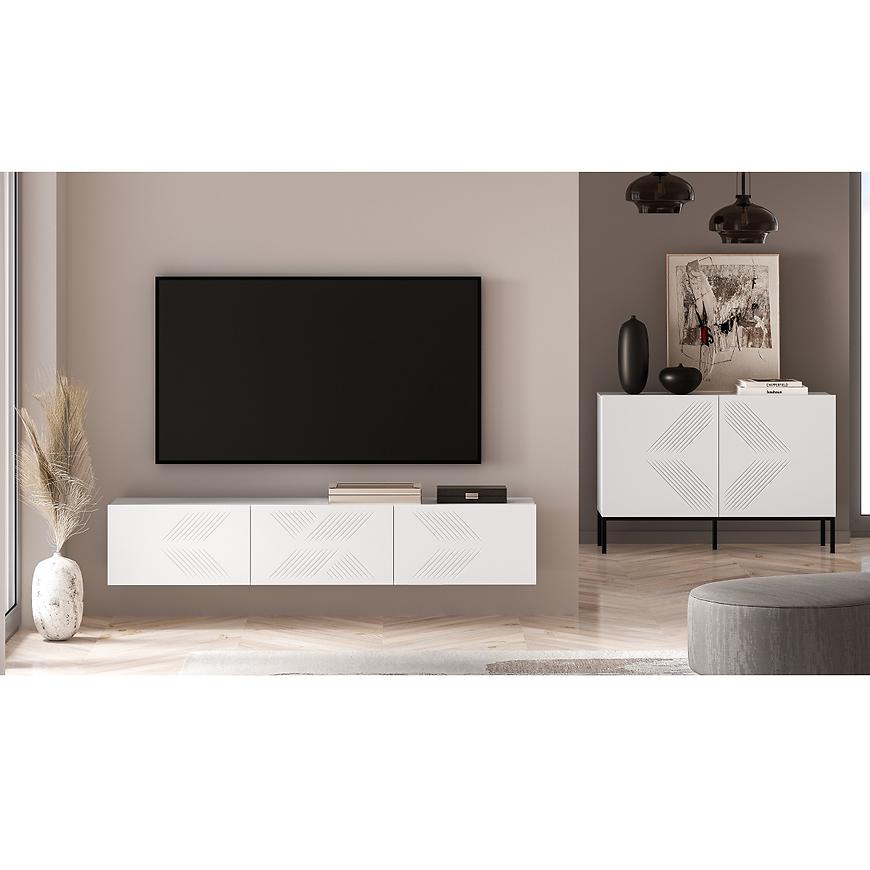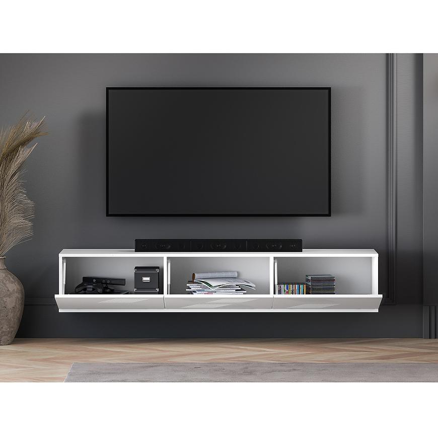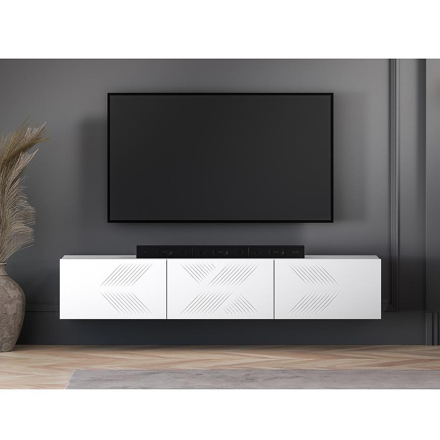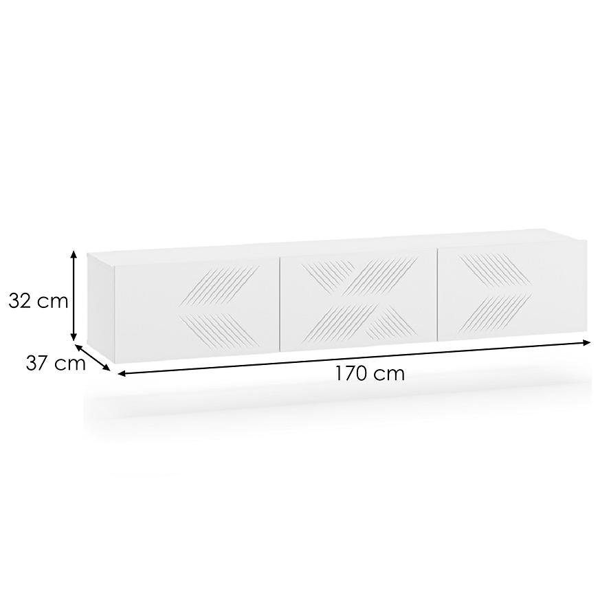 Szafka RTV Wisząca Clearing 07 biała to nowoczesny i funkcjonalny mebel, który doskonale sprawdzi się w salonie. Posiada wymiary: wysokość 32 cm, szerokość 170 cm oraz głębokość 37 cm, oferując praktyczną przestrzeń do przechowywania sprzętu RTV i innych akcesoriów. Fronty wykonane są z płyty MDF w białym, matowym wykończeniu, które harmonizuje z białym, matowym korpusem z płyty wiórowej laminowanej. Trzydrzwiowa konstrukcja ułatwia organizację przestrzeni, a lekka konstrukcja o wadze 25 kg i wymóg samodzielnego złożenia gwarantują wygodny transport i montaż. To stylowy wybór do każdego nowoczesnego salonu.
