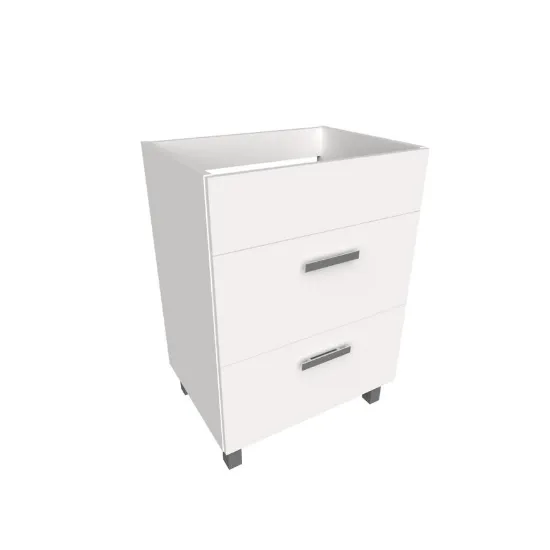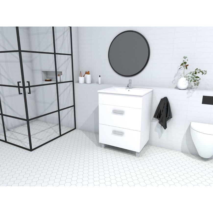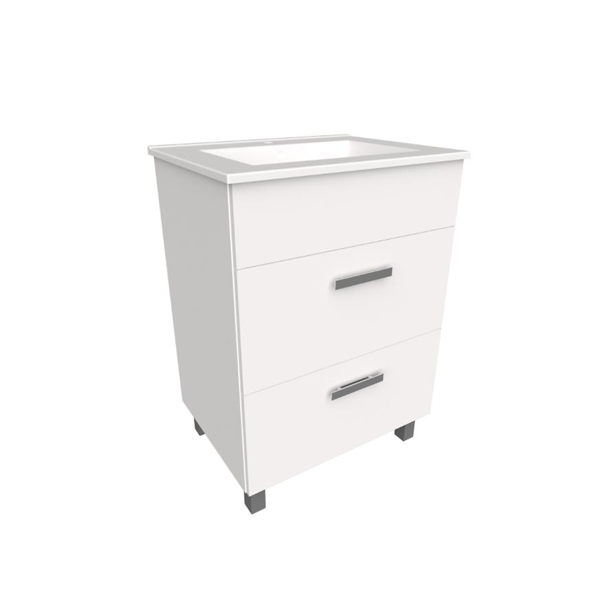 Szafka stojąca Beru 60 cm 2S biała to elegancki i praktyczny mebel łazienkowy o wymiarach 59,6x45,2x83 cm. Wykonana z płyty wiórowej z lakierowanym frontem i laminowanym korpusem w kolorze białym, łączy nowoczesny wygląd z trwałością. Model 2-szufladowy, stojący, wyposażony w system samodomykania i przeznaczony do samodzielnego montażu. Idealna do przechowywania akcesoriów w funkcjonalnej i estetycznej łazience.