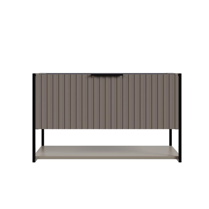 Odpowiednio dobrany materiał to klucz do trwałości, dlatego szafka Turf została wykonana z solidnej płyty wiórowej. Wykończenie matowym lakierem nadaje jej nie tylko elegancji, ale także sprawia, że odbicie światła jest delikatne i subtelne. Dostępne kolory – szary, czarny i marengo – pozwalają na dopasowanie mebla do indywidualnych preferencji.