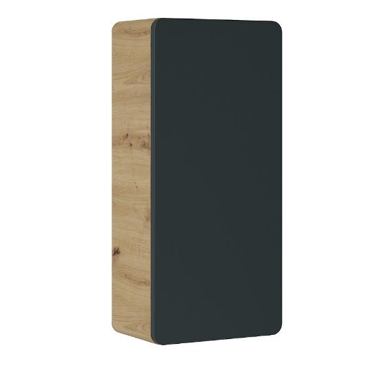 1-drzwiowa wersja szafki, wyposażonej w system samodomykania, oferuje dyskretną przestrzeń do przechowywania. Jej montaż jako szafki wiszącej dodaje elegancji i lekkości pomieszczeniu.