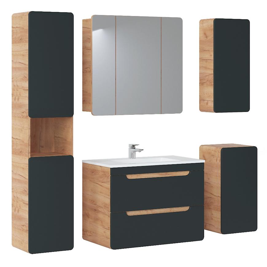 Szafka wisząca Aruba Cosmos to harmonijne połączenie funkcjonalności i estetyki z kolekcji ARUBA. Jej front wykonany z płyty MDF, obity folią PVC w eleganckim odcieniu grafitu, nadaje charakteru wnętrzu. Korpus z płyty wiórowej w dekorze dębu craft wprowadza ciepło i naturalność.
