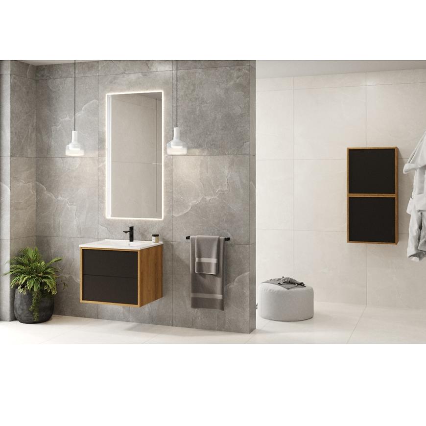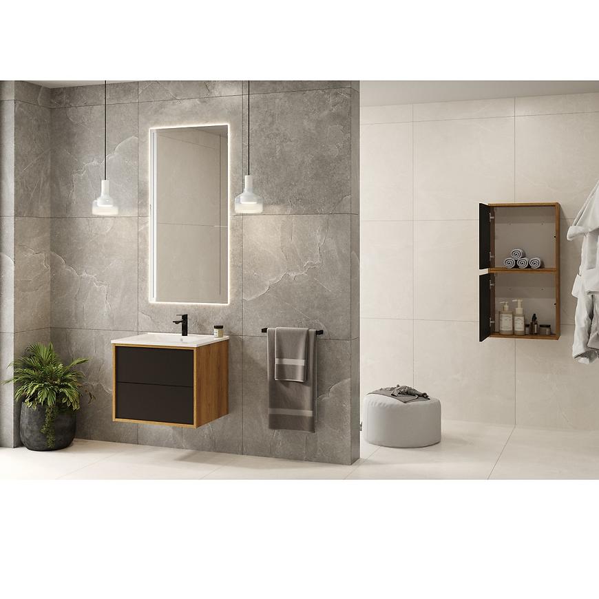 Elegancka i funkcjonalna szafka łazienkowa z kolekcji Erin zachwyca swoim klasycznym i uniwersalnym wzornictwem. Wykonana z solidnej płyty wiórowej, ta szafka to połączenie funkcjonalności i stylu. Jej front w matowym lakierze o pięknym odcieniu nadaje jej wyjątkowego charakteru, podczas gdy korpus w ciepłym odcieniu dębu karmel dodaje przytulności.