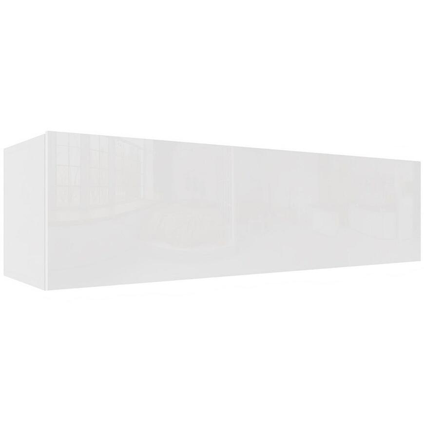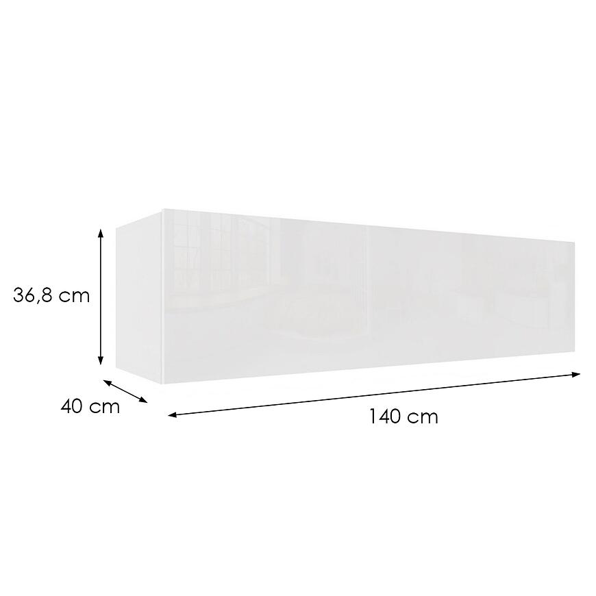 Szafka wisząca Izumi-43-WH wykonana z laminowanej płyty wiórowej, w kolorze biały mat/połysk, łączy nowoczesny design z praktycznym przechowywaniem. Wymiary 140 × 36,8 × 40 cm zapewniają dużą przestrzeń, a waga 24,52 kg umożliwia solidny montaż. Kontrast matu i połysku dodaje elegancji i podkreśla nowoczesny charakter szafki.