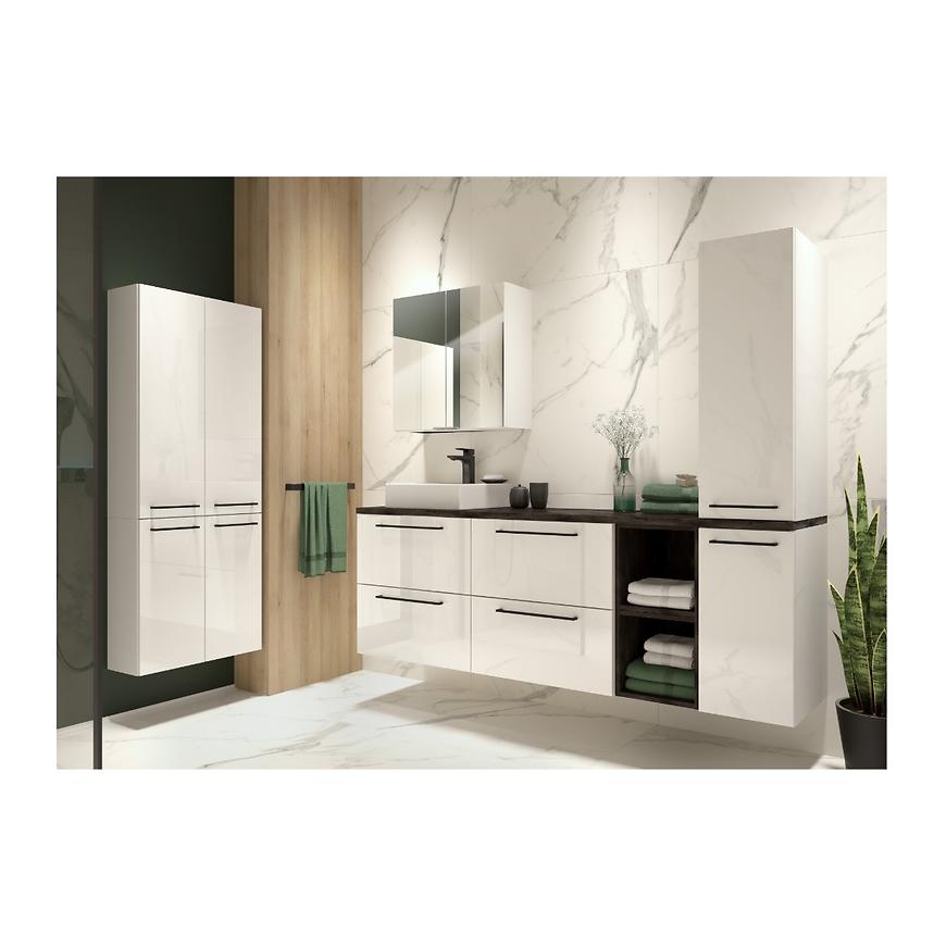 Jej biały połysk doda łazience optycznie przestrzeni, świeżości i ją rozjaśni, dodając jednocześnie subtelnego blasku. Dzięki systemowi samodomykania, otwieranie i zamykanie szafki staje się ciche i wyjątkowo komfortowe.