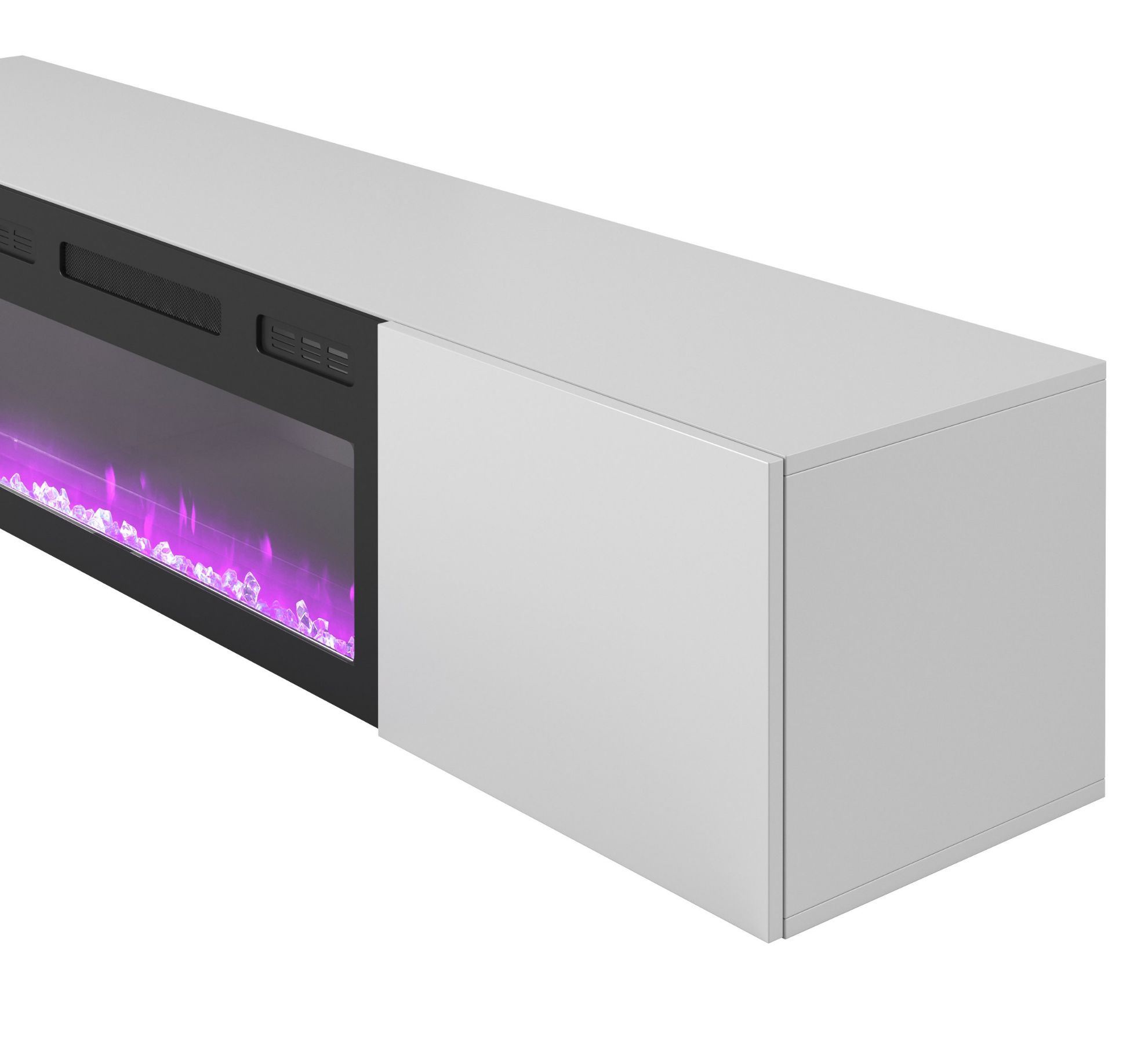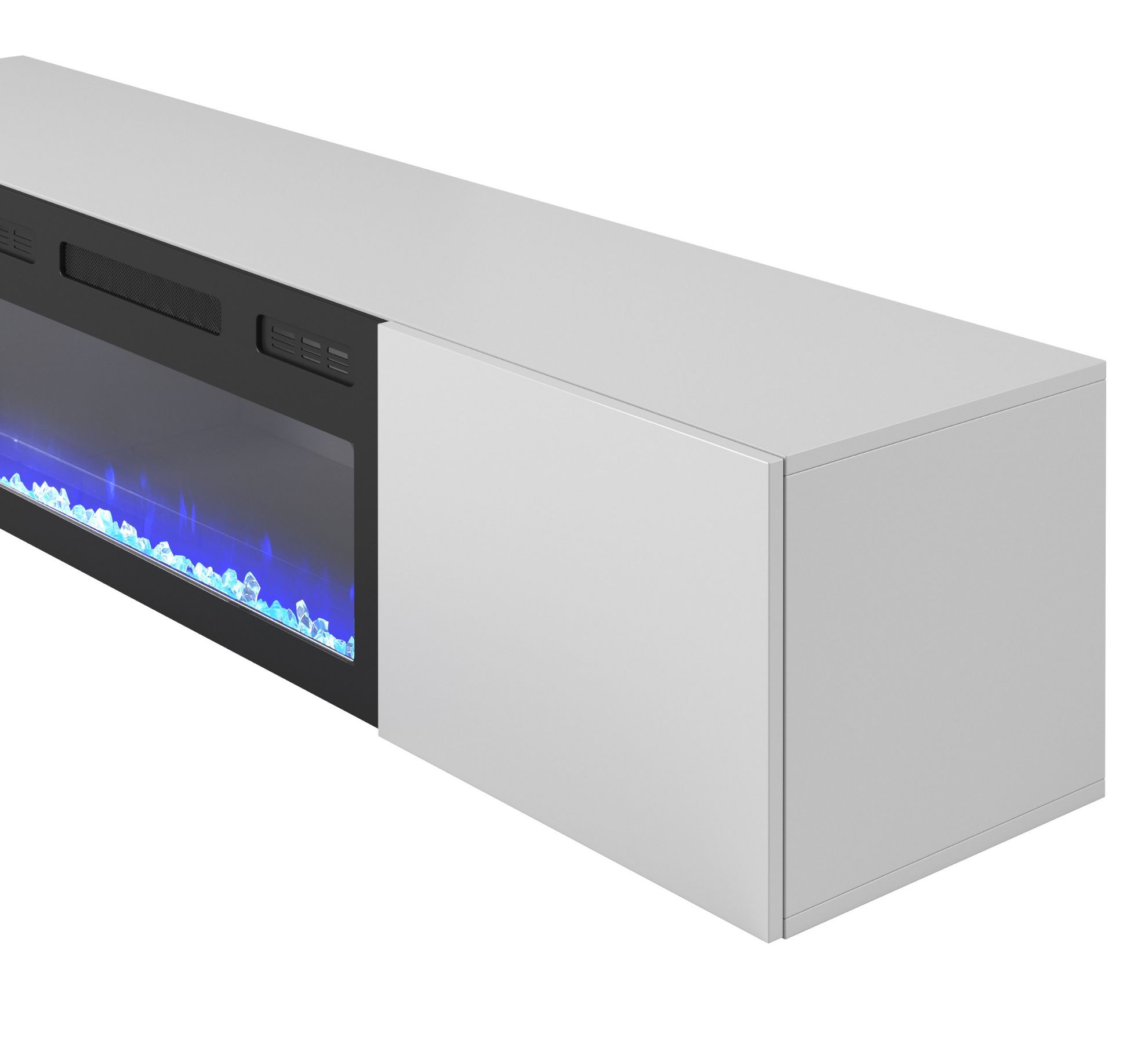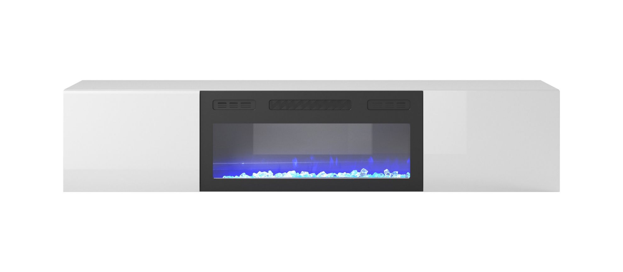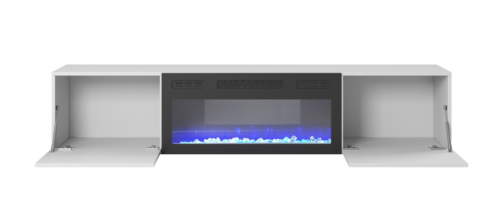 Szafka RTV Lena wyposażona jest w kominek, co dodaje jej niepowtarzalnego charakteru i tworzy atmosferę ciepła w pomieszczeniu. To doskonałe rozwiązanie dla tych, którzy pragną połączyć funkcjonalność mebla RTV z elementem dekoracyjnym.